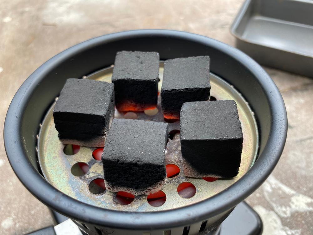 Mix Coconut Charcoal 95 % & 5 % Wood Cube Shape for Shisa ( Gold )